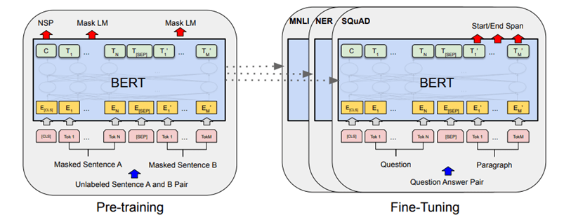 | Input | One sentence as input | two sentence pair as input during Pre-training. One/Two sentence as input during fine-tuning depending on the tasks / use case |